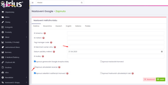 - aktivované recenze v aplikaci Google Merchant Center